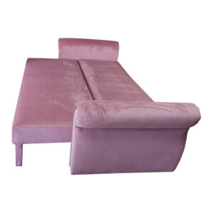 Stylowa kanapa w różowej tkaninie.