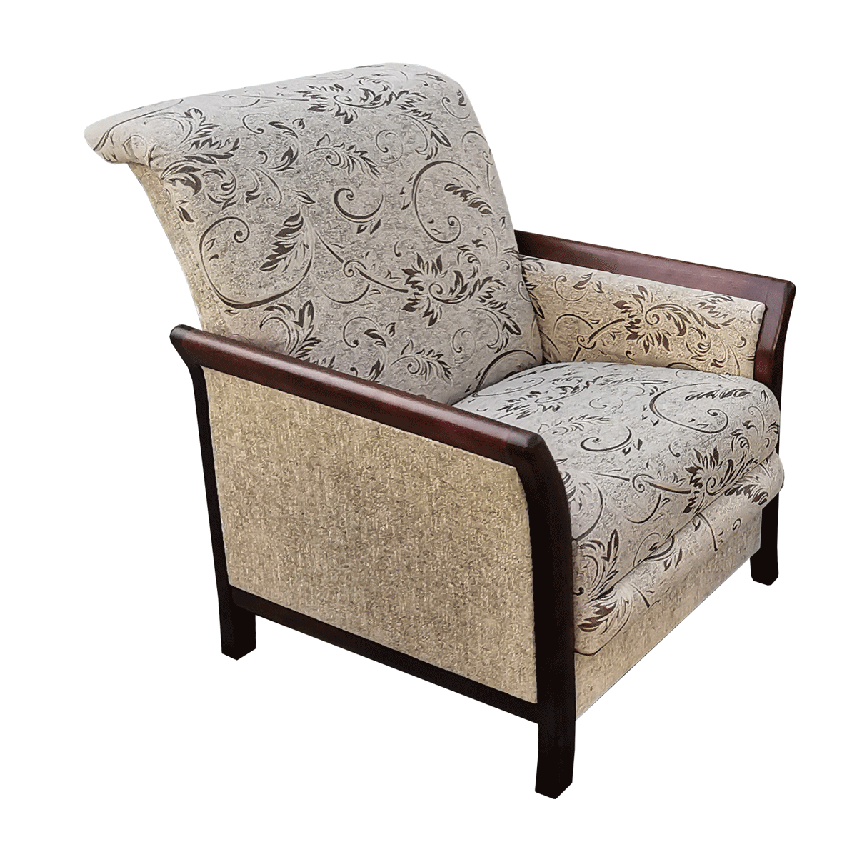 Komplet wypoczynkowy R1 z drewnianymi ozdobami w kolorze orzech ciemny-brąz.