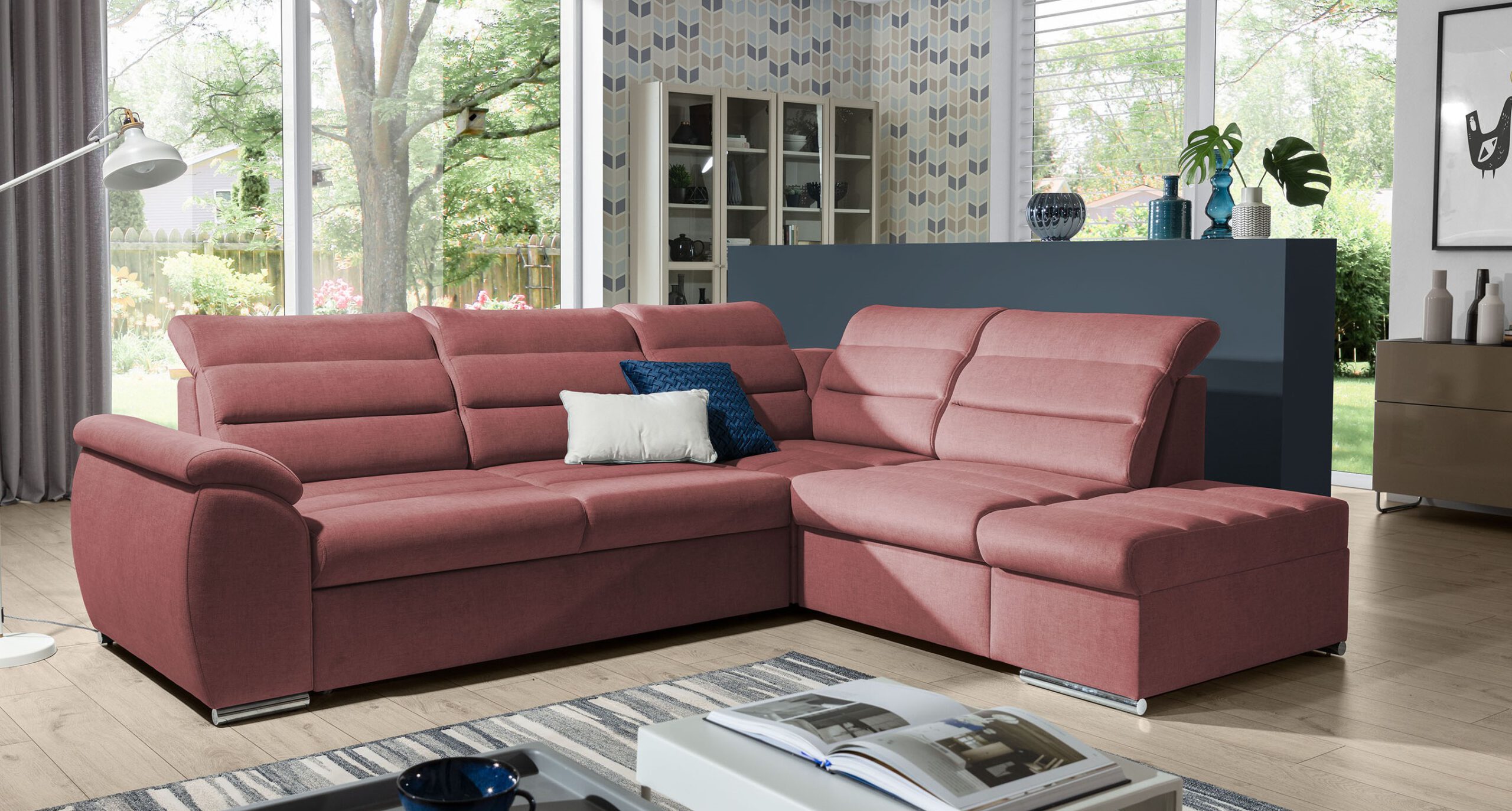Mały narożnik z funkcją spania z profilowanymi poduchami 1 × 2 450,00 zł - ×